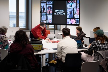 WER TRAINIERT HIER WEN? Während der KI-Woche pausiert der normale Lehrbetrieb – stattdessen gibt’s ein Menü aus halbtägigen Workshops, die quer zu den gewohnten Strukturen verlaufen. Das Besondere: Jeder kann einen Workshop anbieten, Lehrende Kurse von Studierenden und Kolleg*innen besuchen. Ziel sind nicht perfekte Entwürfe, sondern neue Erkenntnisse, Methoden.