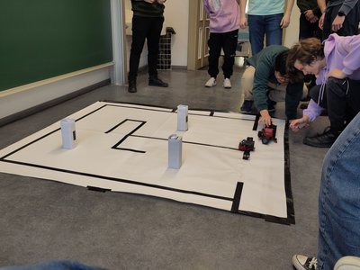 Die Randbedingungen waren klar definiert: Linienbegrenzungen durften nicht überfahren und Hindernisse nicht berührt oder verschoben werden. Zur technischen Umsetzung standen unterschiedliche Sensorsysteme zur Verfügung, darunter Ultraschallsensoren zur Distanzmessung sowie Spurhaltesensoren zur Linienerkennung. Auf dieser Grundlage entwickelten die Gruppen robuste Algorithmen zur Umgebungswahrnehmung, Entscheidungsfindung und Bewegungssteuerung und integrierten diese in ein funktionierendes Gesamtsystem.