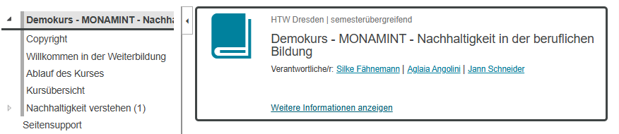 Hier finden Sie unseren Demokurs. Ziel ist es, Ihnen einen kleinen Einblick in die in unserem Projekt entwickelten Lernmaterialien zu geben. Kapitel 1 steht vollständig für Sie zur Verfügung. Falls Sie weitere Einblicke und Informationen brauchen, können Sie sich an die zuständigen Mitarbeitenden wenden.
