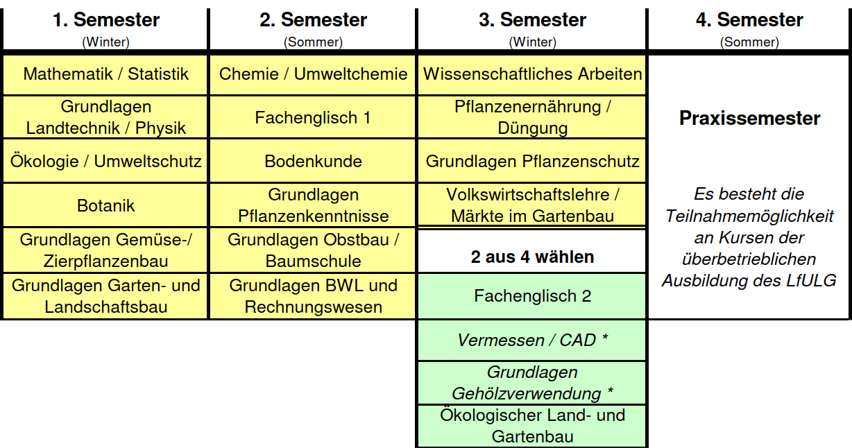 Nachfolgend absolvieren Sie im 4. Semester ein Praktikum in einem gartenbaulichen Betrieb.