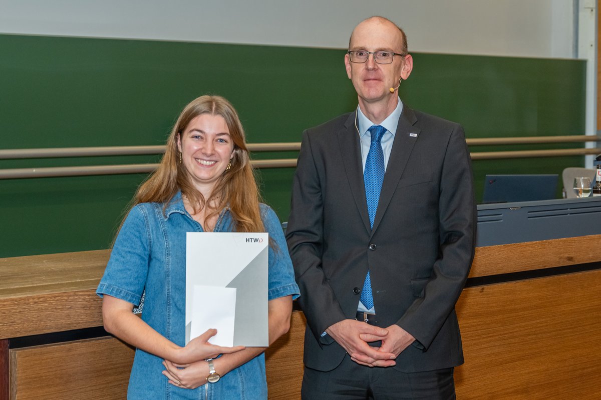 Elisa Range, Absolventin Bachelor International Business, wurde von der Fakultät mit dem „Engagementpreis“ ausgezeichnet. Sie hat sich während ihres Studiums sehr intensiv für die Selbstverwaltung engagiert. Sie war beispielsweise Mitglied im Fakultätsrat, in den Rektoratskommissionen Hochschulkommunikation und Bibliothek. Darüber hinaus hatte sie diverse Ämter im Studentinnenrat der HTWD und hat mehrere Erstsemestereinführungen maßgeblich organisiert. Sie hat die Stimme der Studierenden stets kritisch-konstruktiv eingebracht und damit zur Weiterentwicklung der HTWD beigetragen.