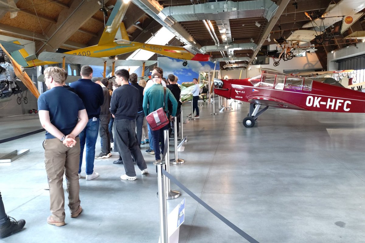 Anstelle von Laborbesichtigungen organisierten die Kollegen der Universität Prag eine Besichtigung des sich noch im Bau befindlichen Eisenbahnprojektes „Bahnhof Praha-Bubny“ und eine spektakuläre Präsentation des „Lions-Racing-Teams“ der Uni, quasi das Pendant zur „Formula-Student“ in Deutschland. Dieser erste Tag endete mit einer Busfahrt nach Mladá Boleslav und einer sich anschließenden tollen Führung durch das legendäre Flugzeugmuseum „Aeronautical Museum Methodius Vlach“. Die einstündige Museumsführung war viel zu schnell vorbei, und die Studierenden verließen das Museum mit dem Gedanken: „… unbedingt noch einmal hingehen“.