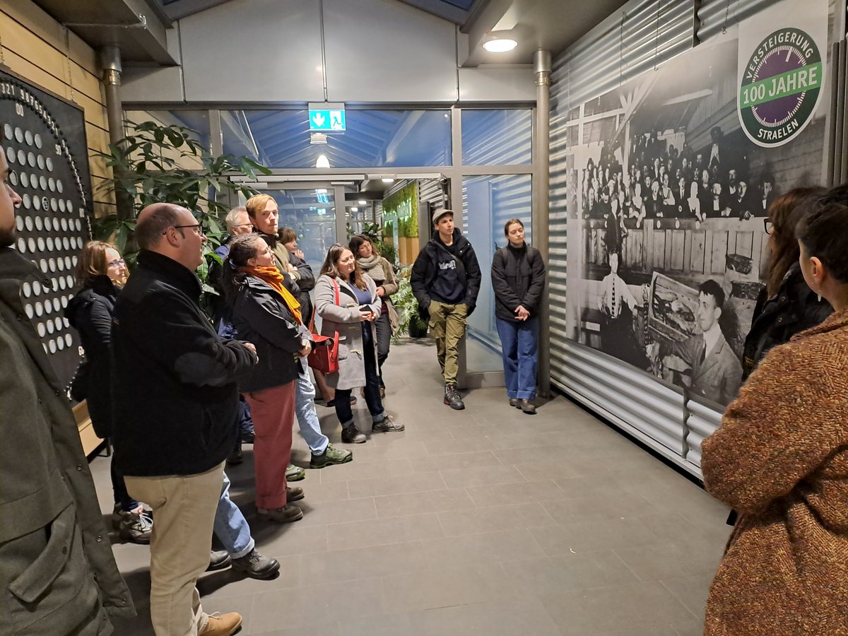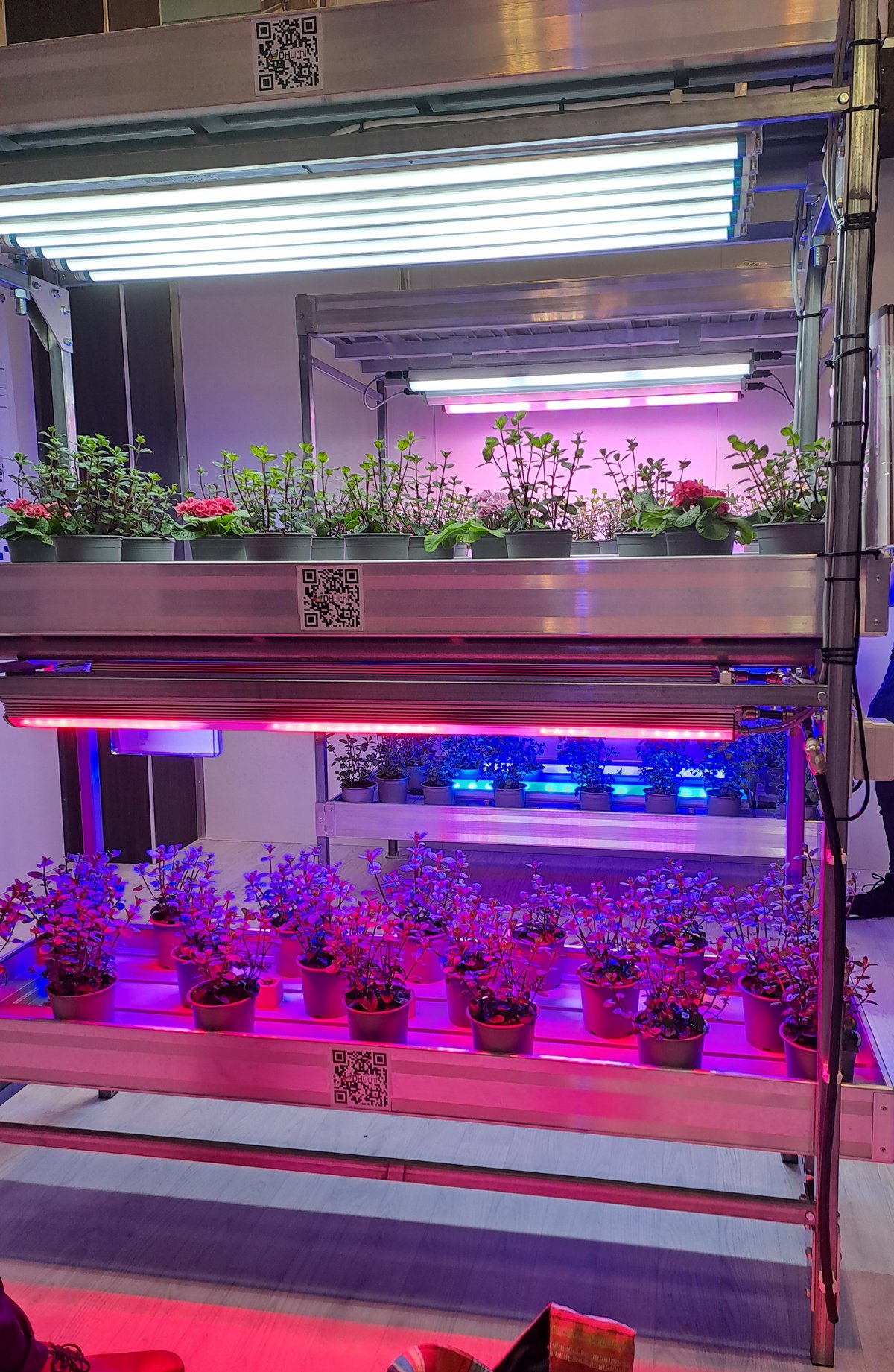 Auch aktuelle Kooperationen und Projekte der Firma wurden vorgestellt – manche klangen wie Sciencefiction. Dass farbige LED-Leuchten im Gartenbau zunehmend eine Rolle spielen, um die Kulturführung effizienter und umweltfreundlicher zu gestalten, ist den Gartenbau-Studierenden natürlich bekannt. Auch an der HTWD in Pillnitz gibt es Versuche, in der Pflanzenproduktion mit gezieltem Einsatz von rotem oder blauem Licht beispielsweise Wuchshemmstoffe zu ersetzen. Eine der Teilnehmerinnen, Josefa Theumer, schreibt derzeit ihre Bachelorarbeit zu der Thematik. Aber dass Bildschirme mit grünem Licht insbesondere Schädlinge wie die Weiße Fliege anlocken, die dann mittels KI dort noch exakt bestimmt werden (könnte ja auch ein harmloses oder gar nützliches Insekt sein) um schließlich mittels Laserimpuls beseitigt zu werden, gehört noch nicht zum Standard-Lehrstoff!