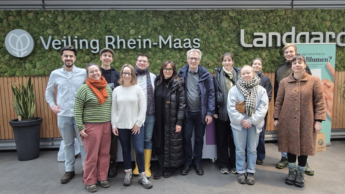 Für einen Großteil der Teilnehmenden war es vermutlich das Highlight der diesjährigen Exkursion: der Besuch der Blumenbörse Veiling Rhein-Maas nahe der niederländischen Grenze. Das lag nicht etwa daran, dass die Internationale Pflanzenmesse (IPM) in Essen – Weltleitmesse des Gartenbaus und eigentliches Ziel der HTWD-Studierenden und -Mitarbeiter aus Pillnitz – weniger interessant war. Immerhin bot sie in 10 Hallen auf rund 100.000 Quadratmetern 1476 Aussteller aus 41 Ländern! Aber einen geführten Rundgang durch eine der größten Blumenbörsen Europas – noch dazu der beinahe einzigen, in der die Ware den Händlern bei der Versteigerung noch physisch präsentiert wird – das erlebt man nicht aller Tage! Genau das aber stand für den Abreisetag noch auf dem Programm.