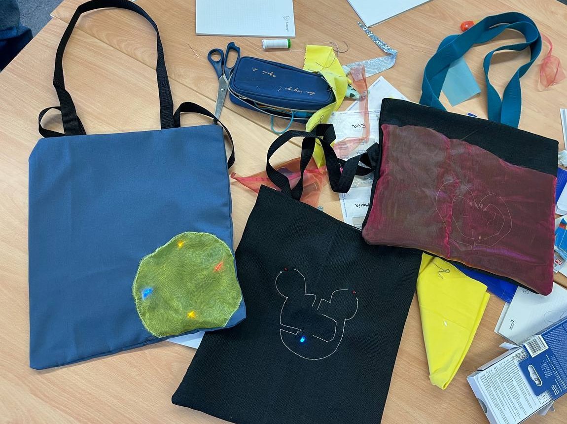 Die Grundidee des Workshops war es, einen Beutel zu nähen und diesen mit LEDs zu versehen. Die Teilnehmerinnen konnten dabei zum einen die Grundlagen des Nähens und den Umgang mit der Nähmaschine lernen. Zum anderen lernten sie aber auch, wie sie mit Hilfe von LEDs und einem Microcontroller ihre individuellen Stücke zu absoluten Highlights machen. Für die Innenseite des Beutels wurden außerdem zum Teil HTW-T-Shirts mit altem Logo vernäht, was dem Projekt zusätzlich Nachhaltigkeit verschaffte und den Mädchen live zeigte, wie cool Upcycling ist. So konnten die Mädchen ihre Kreativität entfalten und erste Erfahrungen im Bereich Programmierung sammeln. Mit Hilfe eines Python-Programms wurden z.B. die Leuchtdauer und -reihenfolge der LEDs programmiert. Ziel war es, den Teilnehmerinnen zu zeigen, was mit der vermeintlich „trockenen Informatik“ für großartige Dinge entstehen können!