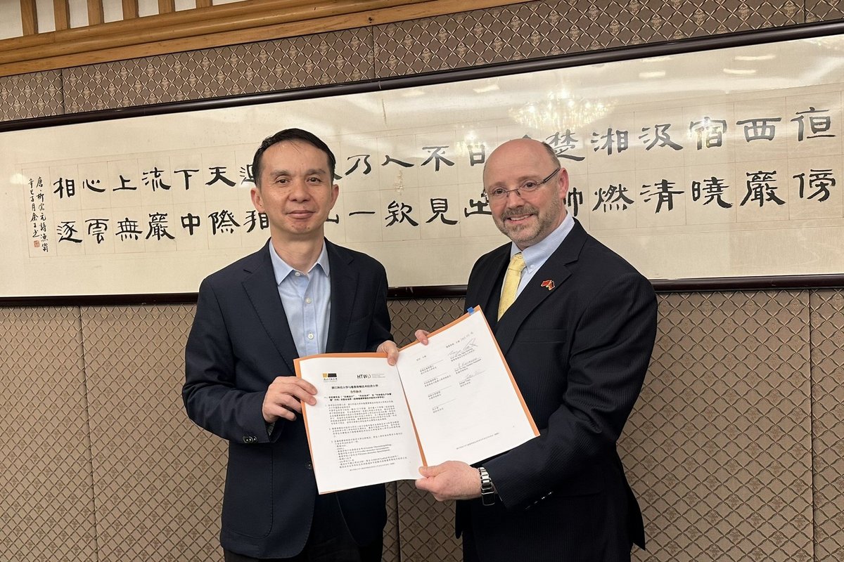 Die Zhejiang University of Science & Technology (ZUST) in Hangzhou (China) ist eine Partnerhochschule der HTWD, mit der seit über 20 Jahren ein intensiver und kontinuierlicher Austausch besteht. Entsprechend erfreulich ist die Erneuerung des Kooperationsvertrages, der am 1. April 2026 offiziell vor Ort in Hangzhou vom Präsidenten der ZUST und weiteren Verantwortlichen unterzeichnet wurde.
