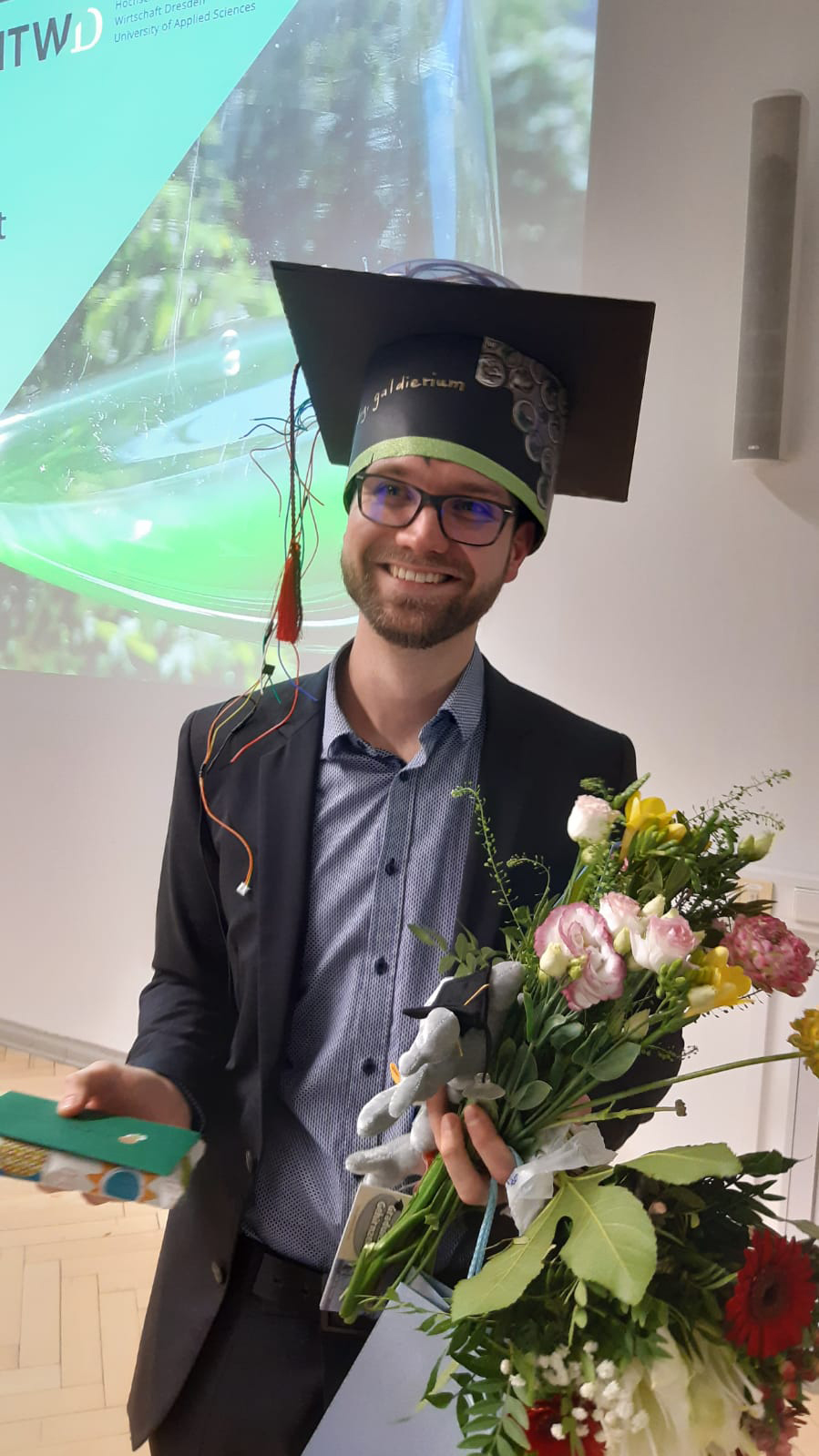 Philipp Scherhag, Absolvent des Chemieingenieurwesens an der Hochschule für Technik und Wirtschaft Dresden (HTWD), hat an der Technischen Universität Dresden (TUD) seine Dissertation mit dem Titel „Optimierung der Phycocyaninproduktion mit Galdieria sulphuraria“ erfolgreich verteidigt.