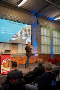 Der erste Tag im Industriemuseum Chemnitz bot mit seinem industriellen Ambiente den idealen Rahmen für Keynotes und Fachbeiträge. Prof. Dr. Dirk Reichelt von der HTW Dresden, der Projektkoordinator des Transferraums OSHOP, und Prof. Dr.-Ing. Steffen Ihlenfeldt, Institutsleiter des Fraunhofer IWU, eröffneten die Konferenz. Sie skizzierten mit ihren Impulsen die zukünftige Entwicklung von OSH. Besonders prägend waren die anschließenden Keynotes. Radu Schwarz (Fraunhofer IISB) stellte das Open-Source-Batteriemanagementsystem foxBMS vor und Martin Duchene von Mekanika zeigte, wie sich auf Basis von Open Source ein erfolgreiches Unternehmen im Bereich Werkzeugmaschinen aufbauen lässt.
