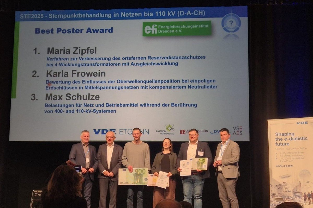 Ein besonderer Erfolg gelang der ehemaligen HTWD-Studentin Maria Zipfel: Sie gewann mit ihrem Poster „Verfahren zur Verbesserung des ortsfernen Reservedistanzschutzes bei 4-Wicklungstransformatoren mit Ausgleichswicklung“ den 1. Platz des Best Poster Awards. Grundlage dieses Beitrags, war ihre an der HTW Dresden verfasste Masterarbeit.