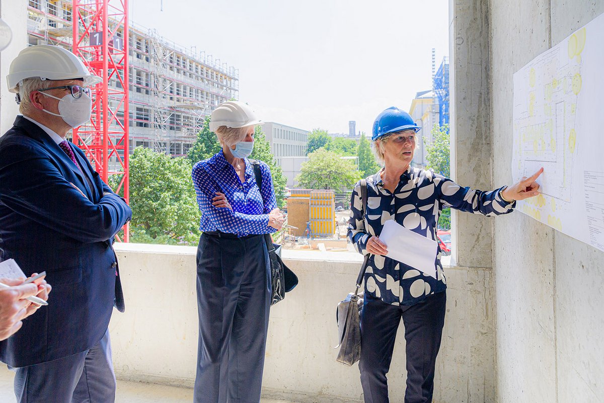 Das neue Lehr- und Laborgebäude der Hochschule für Technik und Wirtschaft Dresden gewinnt weiter an Profil. Der Rohbau wurde nun fertiggestellt. Gestern besuchten Sachsens Finanzminister Hartmut Vorjohann und Prof. Katrin Salchert, Rektorin der Hochschule, die Baustelle.